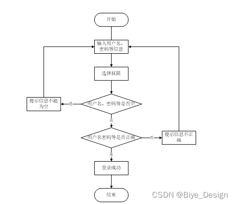 用户打开并进入系统后,会先显示登录界面,输入正确的用户名和密码,系统自动检测信息,若信息无误,则用户会进入系统功能界面,进行操作,否则会提示错误无法登录,操作流程如图3-3所示。