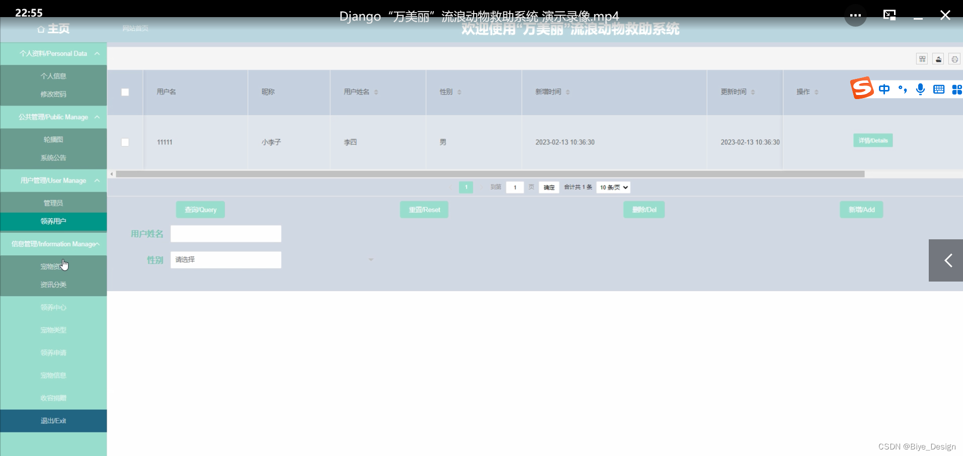In terms of system design, Django's structure is adopted, and MySQL database is used in the background, which is a very excellent rescue system for stray animals.