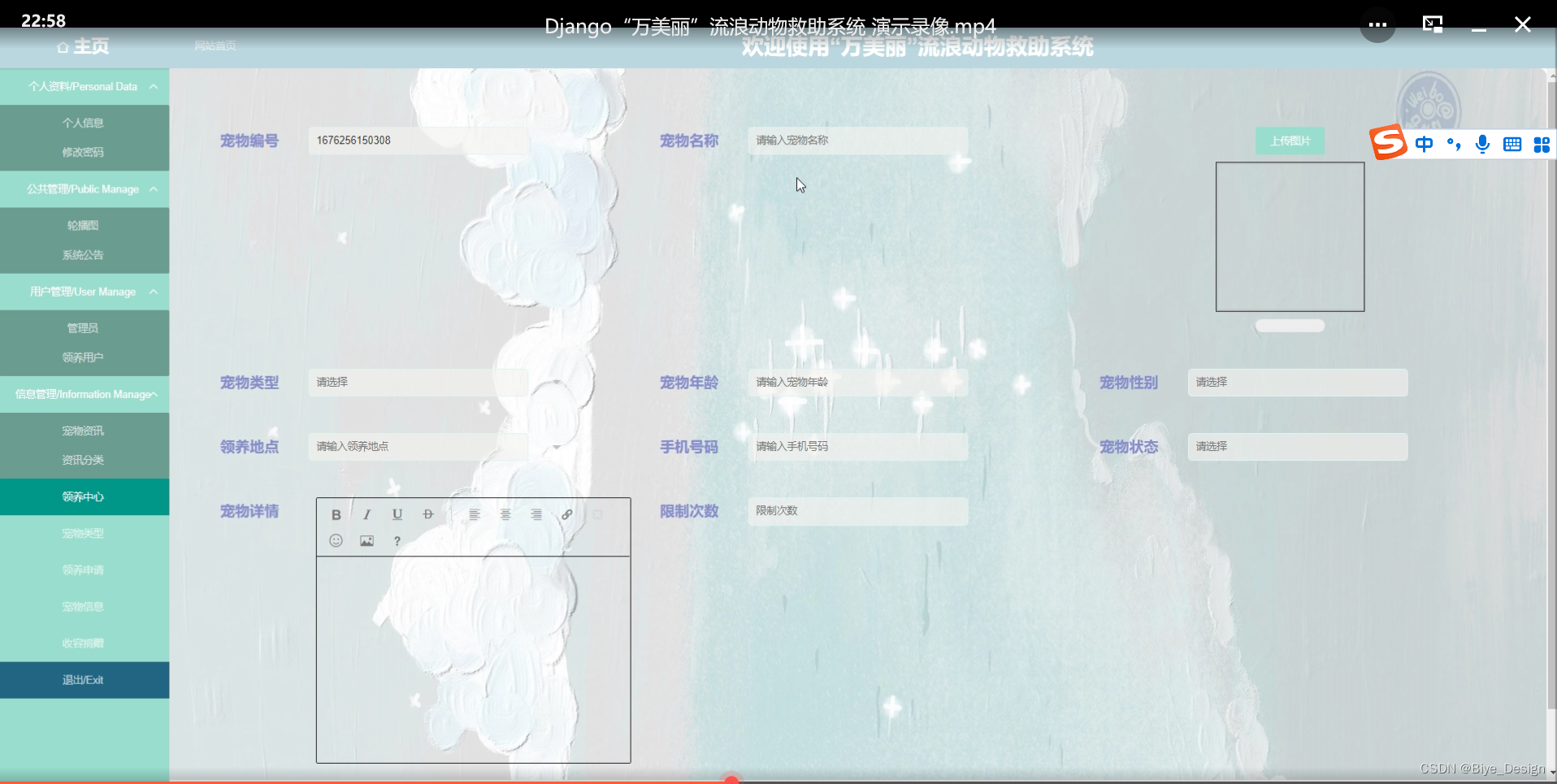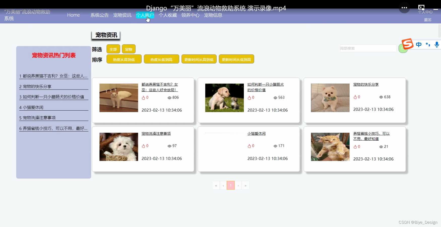 关键词 :流浪动物救助系统;Django技术;Mysql数据库