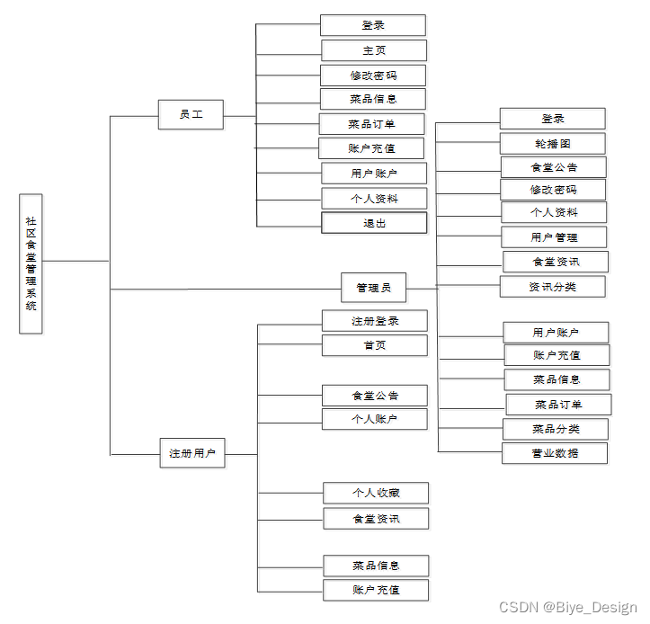 社区食堂管理系统总体分为前台用户模块和后台管理员模块。