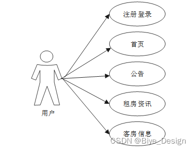 租房管理平台在对需求做解析后,整个系统主要分为两个部分:管理员和用户,每个模块下的分支功能不一样。对功能做出如下说明: