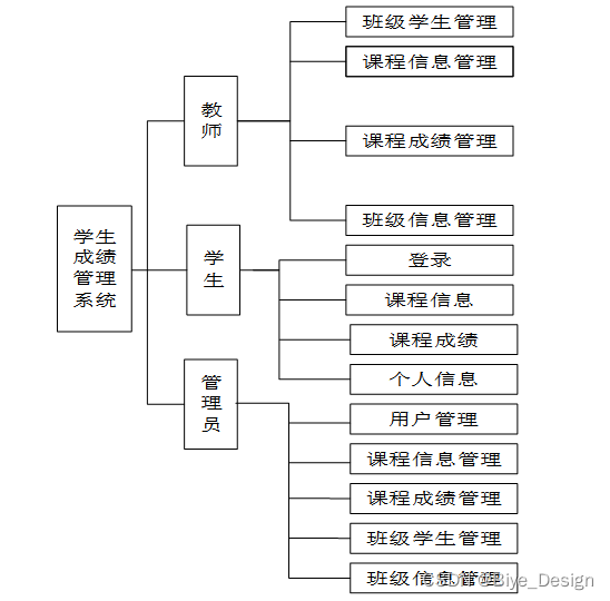 学生成绩管理系统在对需求做解析后,整个系统主要分为两个部分:管理员和普通用户,每个模块下的分支功能不一样。对功能做出如下说明: