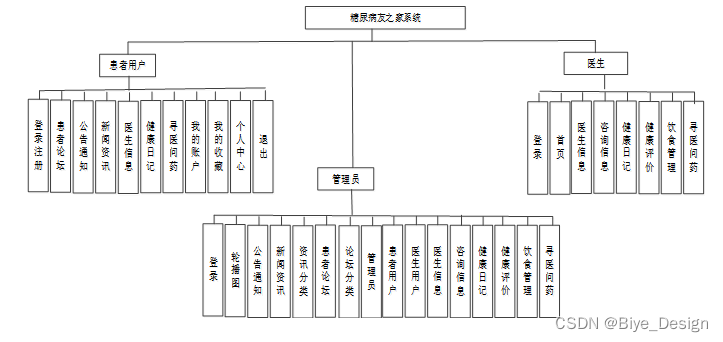 (3)确定好系统使用的技术,进行在线确认系统所划分的用户触,并且根据用户触划分确定所要设计的功能模块,对糖尿病友之家系统的设计主要划分别为管理员和用户触,并所使用的功能模块也相应不同,但系统的数据库实现的内容是交互的,驴可以随时根据自己的需求进行医生信息搜索,对于系统工作人员可以根据自己的分管内容进行在线信息的处理及操作,管理员获取到所有用户的详细数据信息,并根据需求进行第一时间处理解决。
