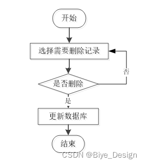 用户选择要删除的信息并单击Delete按钮。系统提示是否删除信息。如果用户想要删除信息,系统将删除信息。系统数据库删除信息。删除信息流程图如图3-5所示。