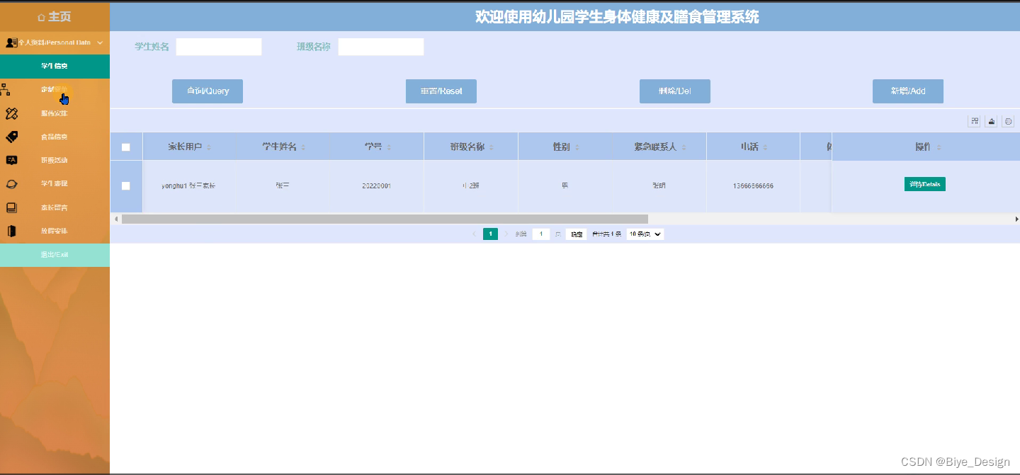 In the era of information technology in the 21st century, almost any industry cannot do without computers. It is also very common to apply computers to the physical health and dietary management of kindergarten students. In the past, manual management methods were used to manage the physical health and diet of kindergarten students, which caused problems such as cumbersome management and difficulty in maintenance. Nowadays, using computers to manage the basic information of kindergarten students' physical health and diet is not only convenient and simple compared to manual management, but also has multiple advantages such as easy management, fast search speed, and large storage capacity. Applying it to the physical health and dietary management of kindergarten students can not only improve the work efficiency of administrators in the physical health and dietary management of kindergarten students, but also make the physical health and dietary management system of kindergarten students more scientific and standardized. Under the continuous impact of the information age, the combination of the physical health and dietary management system of kindergarten students with computer technology will be a shortcut to improve the physical health and dietary management level of kindergarten students.