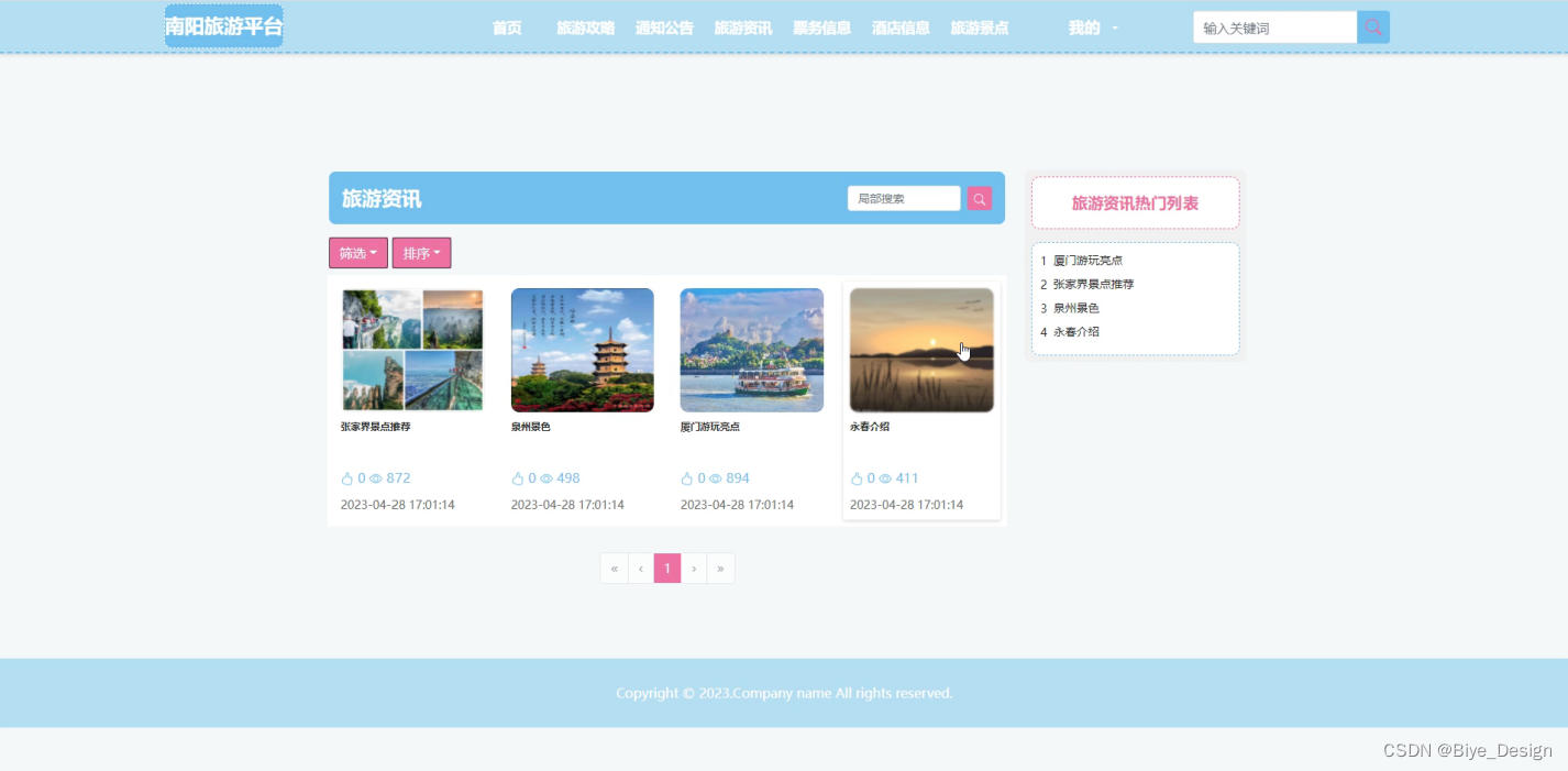关键词:南阳旅游;Springboot框架、MySQL数据库