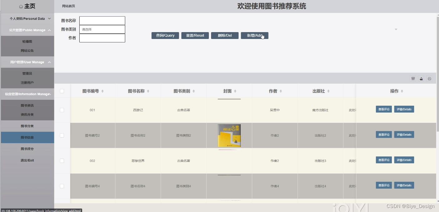 近几年,随着信息技术的不断进步与完善,传统的人工图书推荐管理模式缺点慢慢显现。为了更好地适应信息时代的效率,将出现一个使用计算机来管理图书推荐系统。图书推荐系统对管理员和用户都有很大帮助,图书推荐系统通过和数据库管理系软件协作来搭建管理者和用户之间的一个很好平台,基于这一点,设计了一个图书推荐系统。基于以上认识,收集相关数据和数据,参考相关文献和技术参数,并对图书推荐系统的实际需求进行研究。发现目前所采用的人工管理存在用户借阅评分不方便、信息管理混乱等等这些原因,所以计算机这种管理模式会慢慢代替传统的模式。