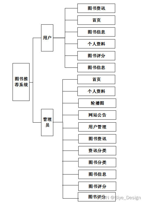 图书推荐系统总体分为前台用户模块和后台管理员模块。