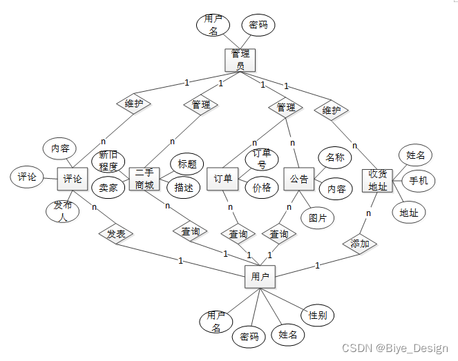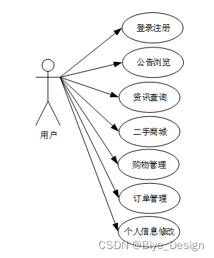 | 主事件流 | (1)管理员进入二手商城界面,查询二手商城商城信息 (2)管理员可以删除二手商城 |