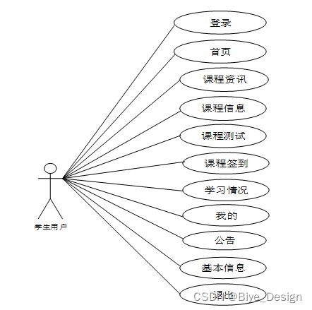 通过2.3功能的分析,得出了本计算机课程教学辅助系统小程序的用例图: