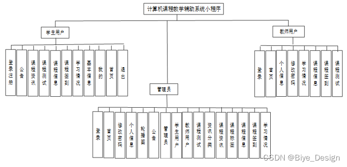 计算机课程教学辅助系统小程序是中需要存储不少课程信息,其模块功能结构,具体的结构图如下: