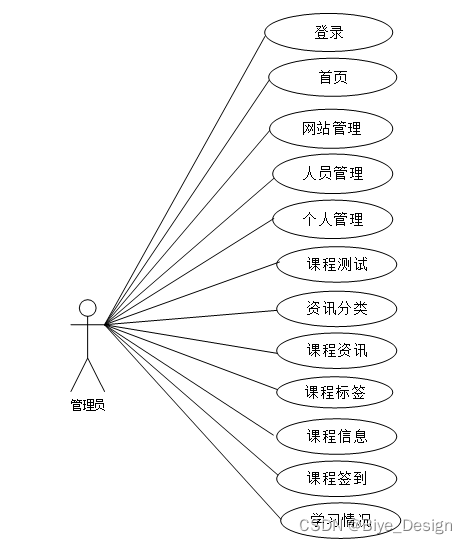 web后台管理上的管理员是维护整个计算机课程教学辅助系统小程序中所有数据信息的。管理员角色用例如图2-4所示。