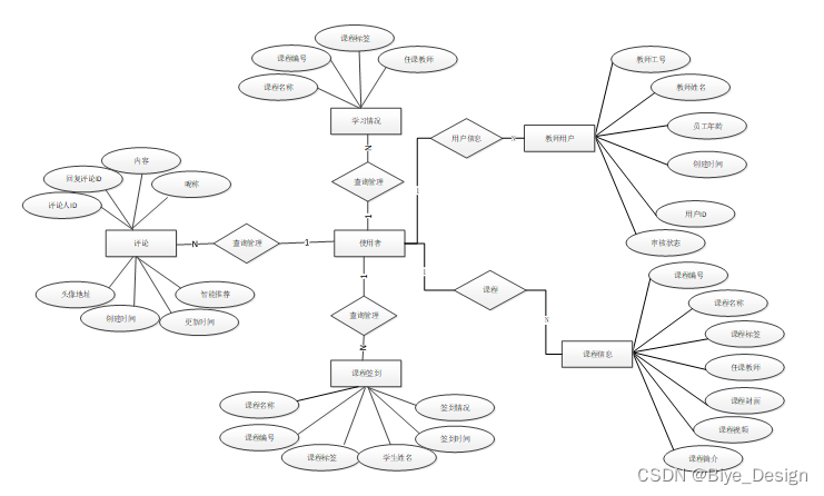 下面是整个计算机课程教学辅助系统小程序中主要的数据库表总E-R实体关系图。