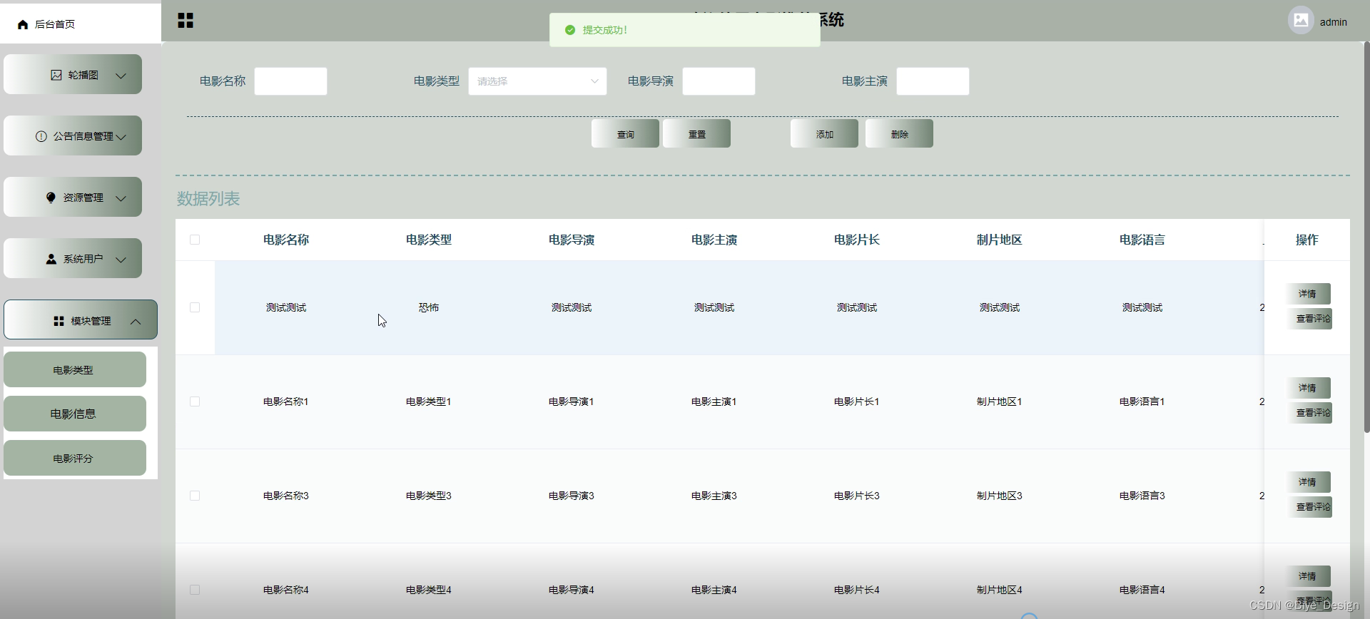 (1)功能要求:管理员可以对所有的电影数据进行分析管理。