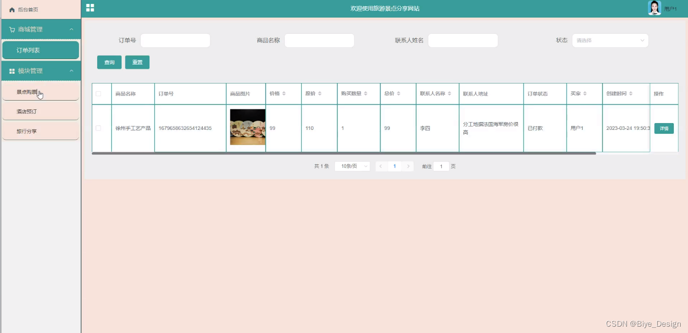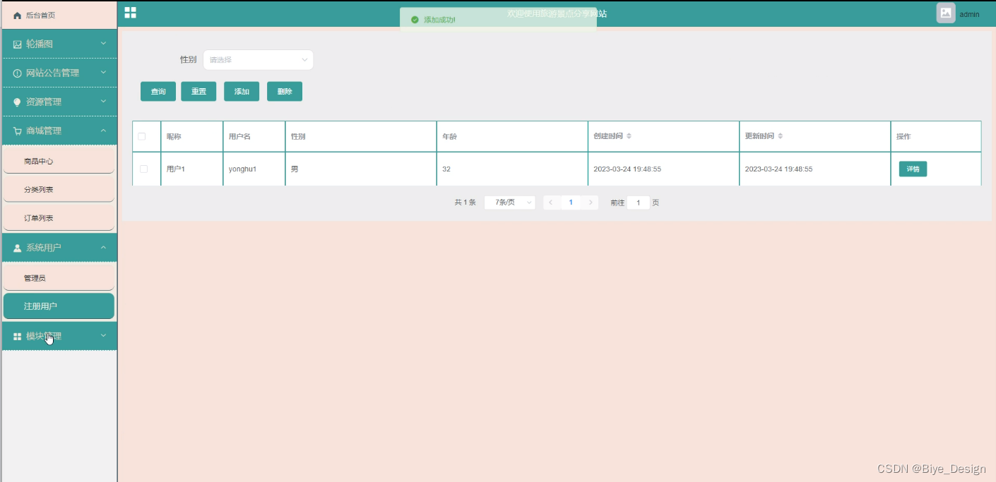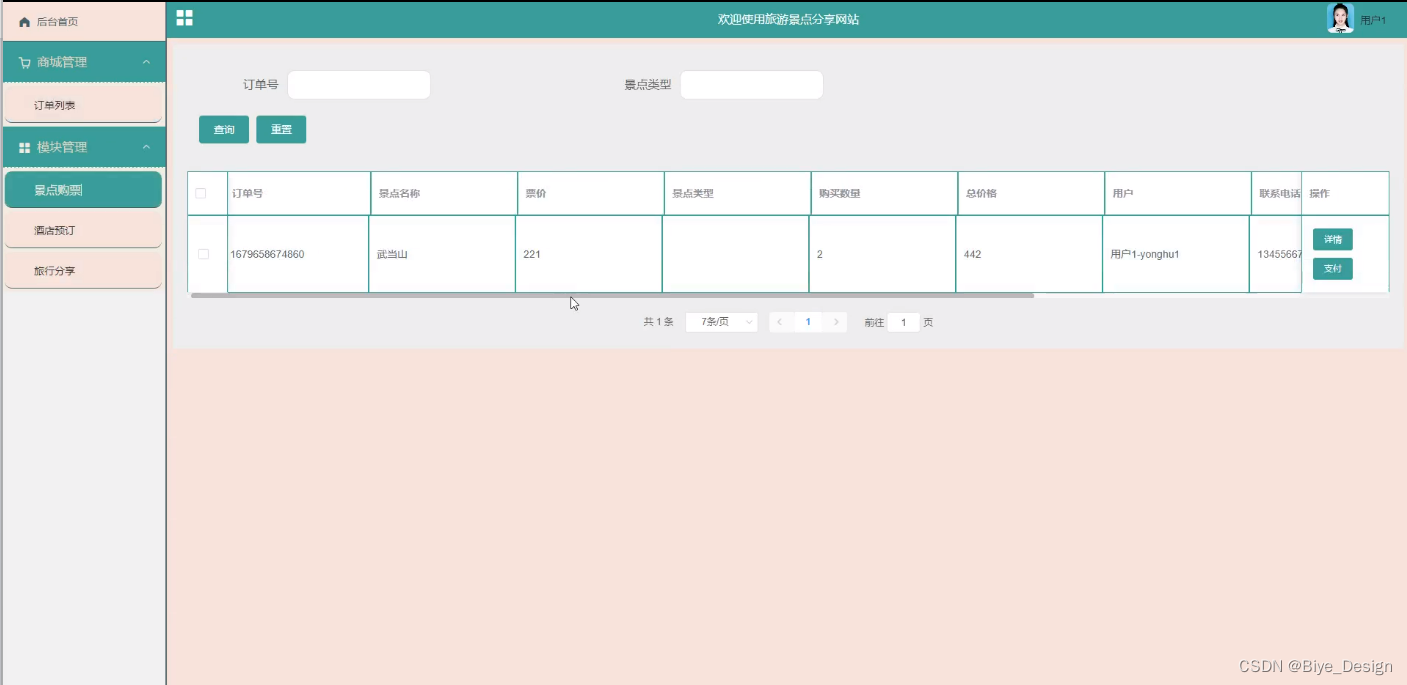 随着社会的发展,社会的各行各业都在利用信息化时代的优势。计算机的优势和普及使得各种信息系统的开发成为必需。旅游景点分享网站设计,主要的模块包括查看后台首页、轮播图(轮播图管理)、网站公告管理(网站公告)、资源管理(旅行资讯、资讯分类)、商城管理(商品中心、分类列表、订单列表)、系统用户(管理员、注册用户)、模块管理(地区管理、景点分类、房型管理、景点信息、景点购票、酒店信息、酒店预订、旅行分享)等功能。系统中管理员主要是为了安全有效地存储和管理各类信息,还可以对系统进行管理与更新维护等操作,并且对后台有相应的操作权限。