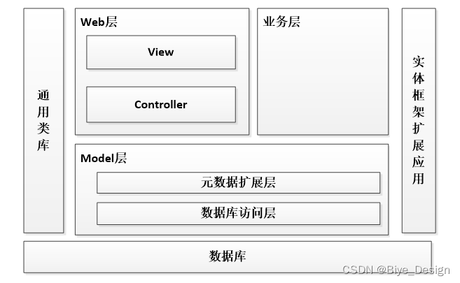 本天气信息可视化分析系统的架构设计主要分为可以3层,主要有Web层,业务层,Model层。其中web层还包括View层和Controller层,Model层包括元数据扩展层和数据访问层。