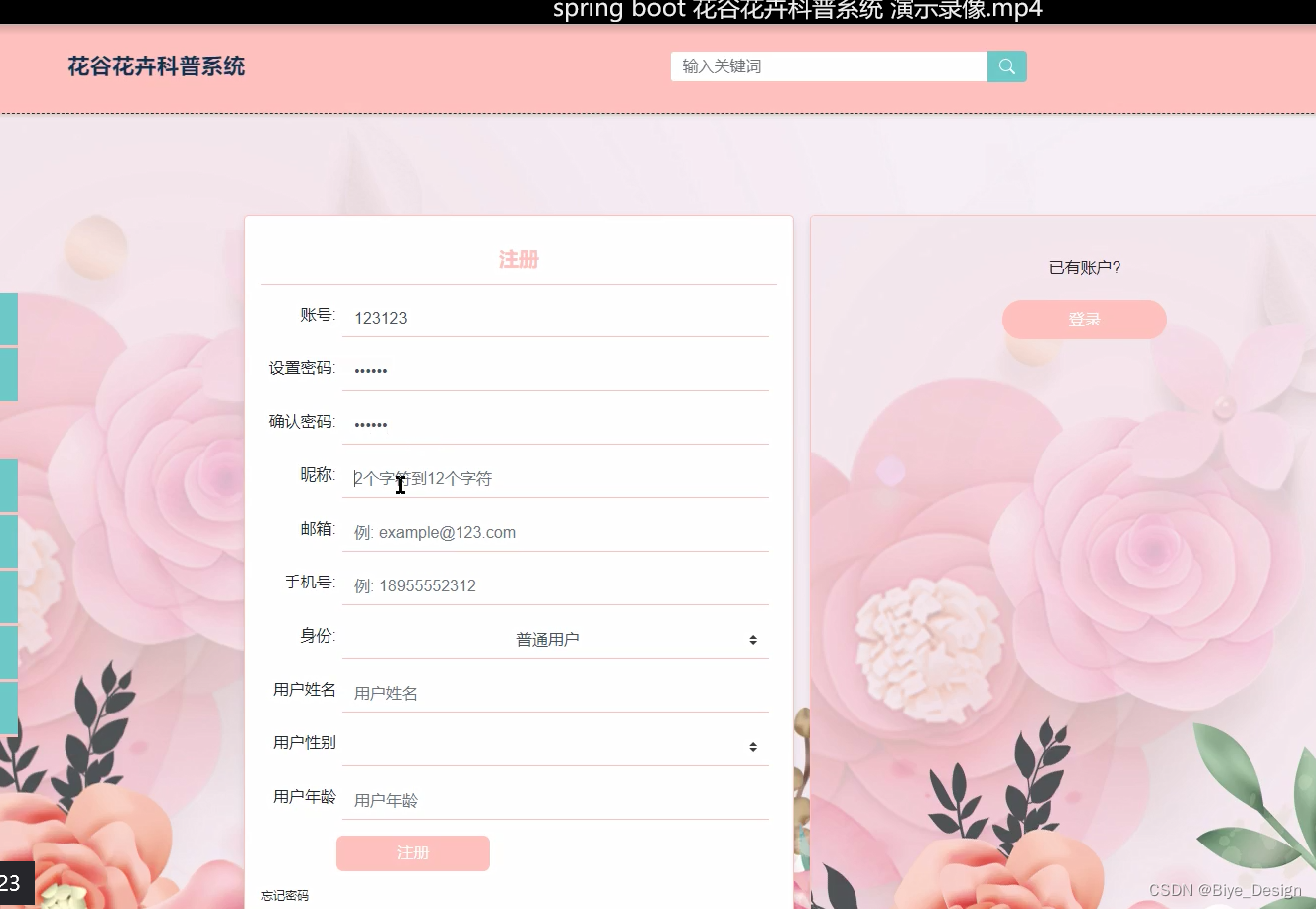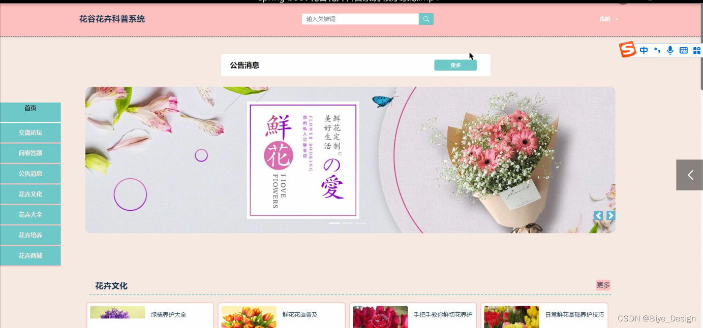 关键字:花谷花卉科普系统 Mysql springboot框架