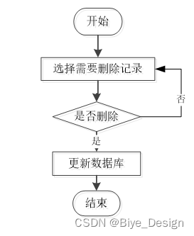 用户选择要删除的信息并单击Delete按钮。系统提示是否删除信息。如果用户想要删除信息,系统将删除信息。系统数据库删除信息。删除信息流程图如图3-5所示。