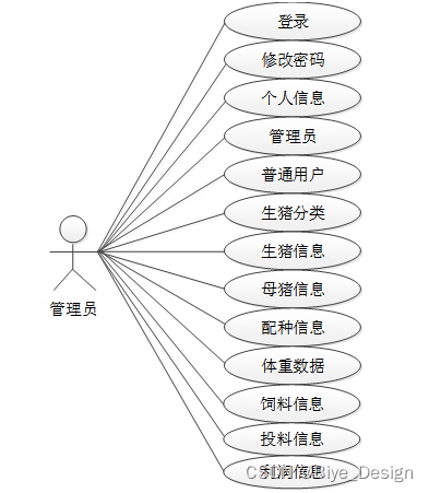 猪场管理系统中管理员角色用例图如图2.2所示: