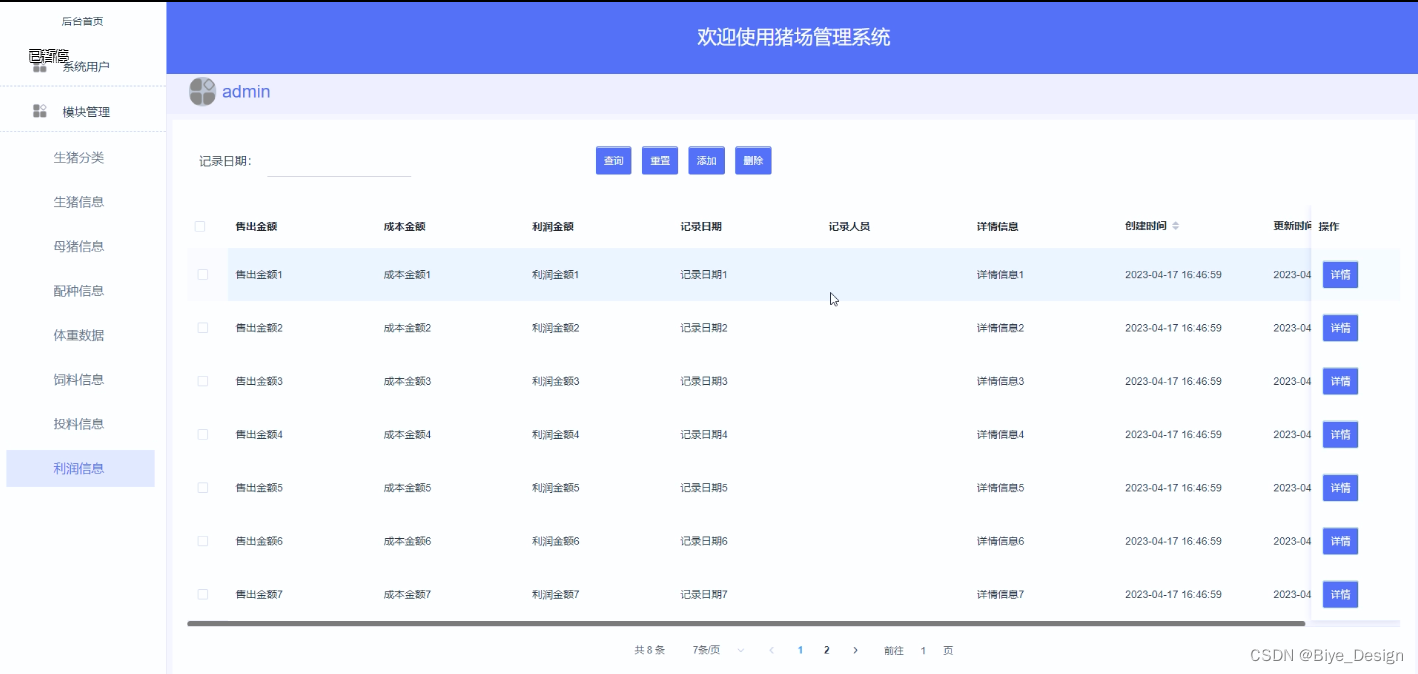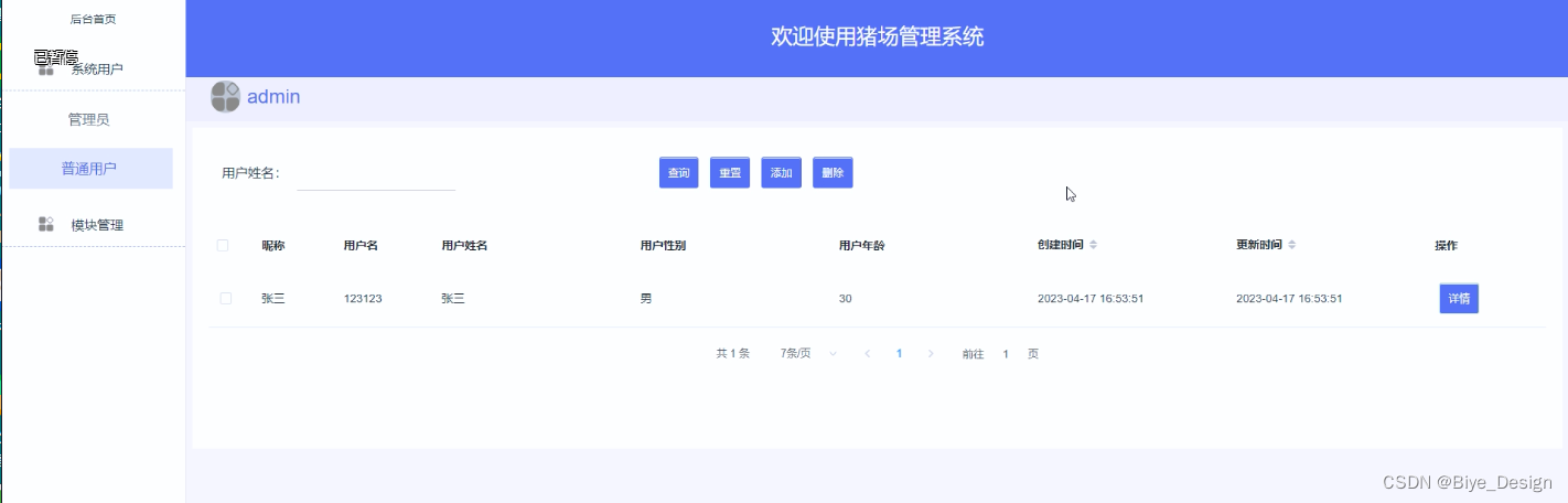 本系统即为方便管理员和用户而制作的猪场管理系统,结合了用户的需求,设计出的一个基于springboot、MySQL的猪场管理系统。