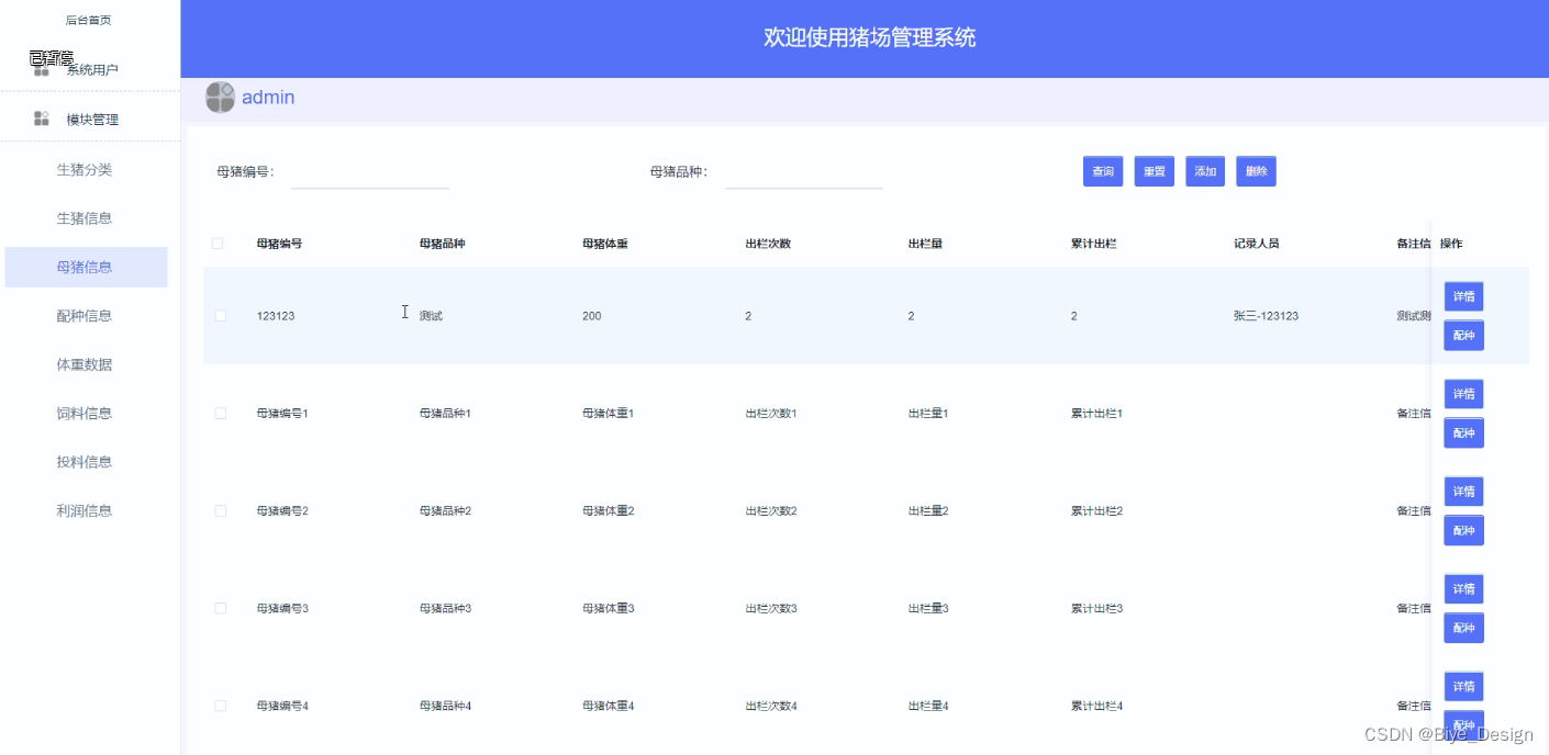 - 母猪信息模块