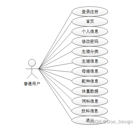 猪场管理系统中普通用户角色用例图如图2.1所示: