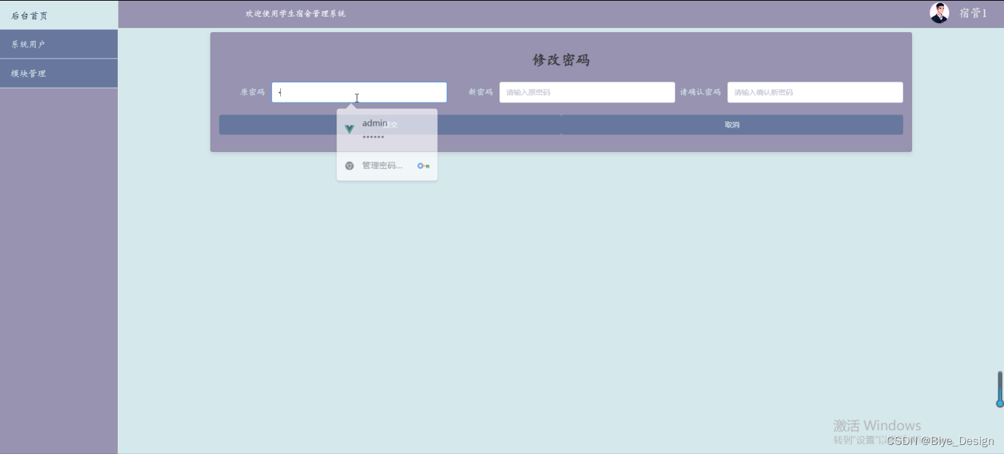 修改密码:在此页面可对自己的密码进行修改操作,如图5-11所示。