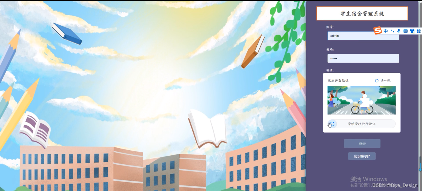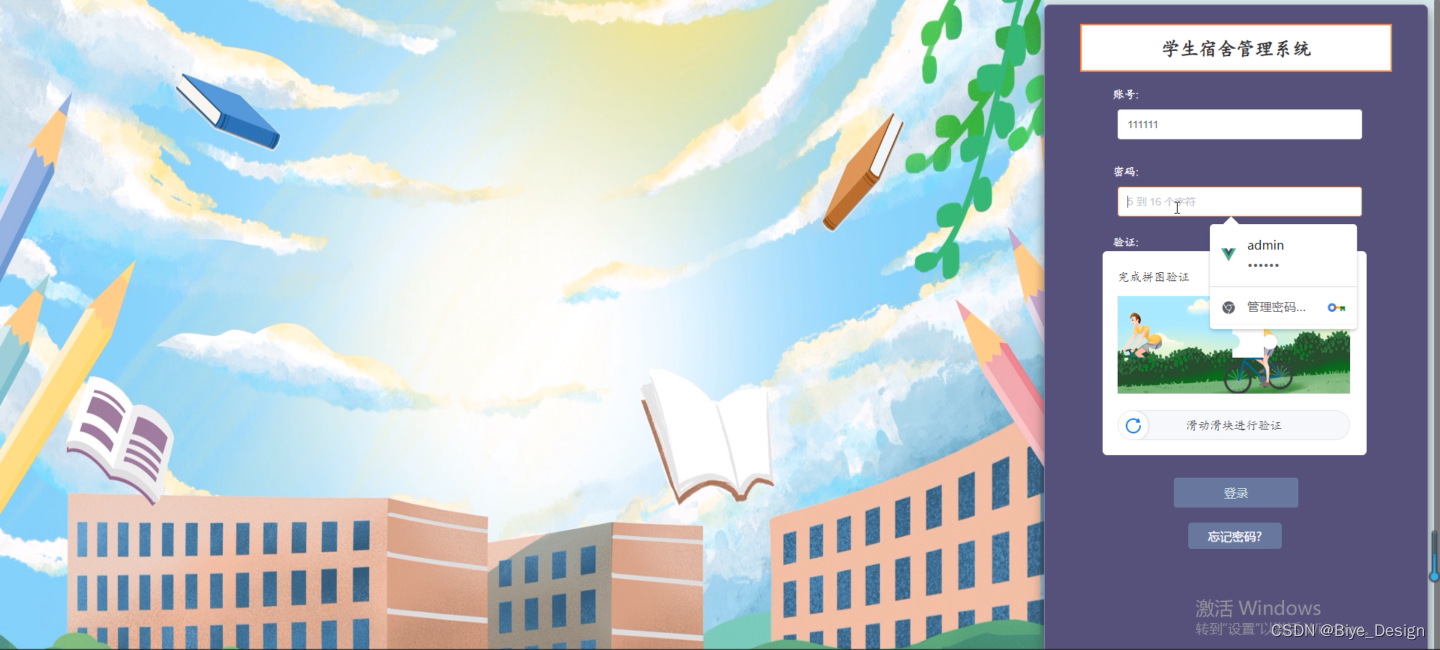 管理员登录学生宿舍管理系统,在登录页面输入用户名、密码、图片验证等进行登录,如图5-1所示。