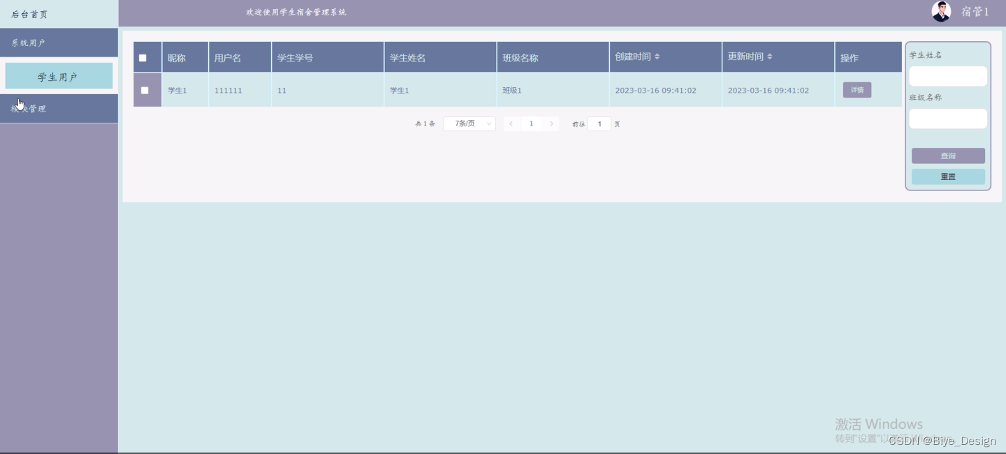 学生用户:宿管用户可在此页面查看所示学生用户的信息,如图5-12所示。