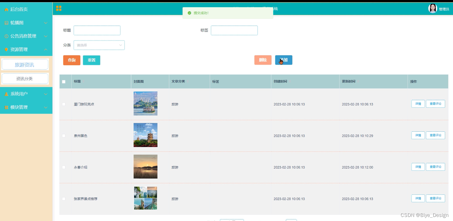 资讯管理模块:管理员查看资讯数据,并且发布资讯数据,编辑资讯数据,删除资讯数据。