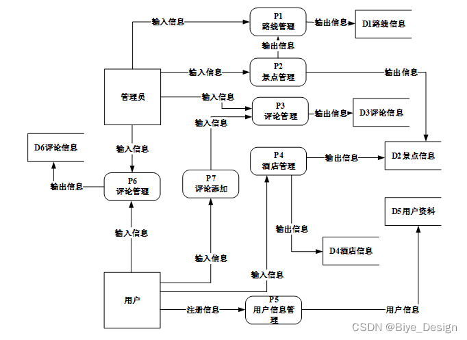 根据系统的业务流程,用户浏览所使用到的数据归纳为输出信息。而用户提交的数据则作为系统的输入数据。相应的,根据系统管理员业务流程,管理员对系统内容的添加、更新和删除等所操作的数据定义为输入信息。