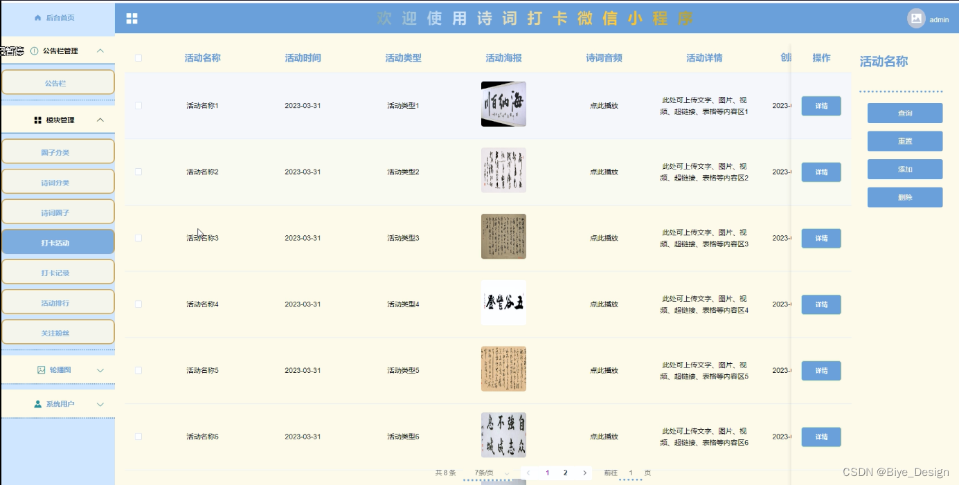 With the rapid development of China's economy, people's demand for mobile phones is increasing, and various mobile software is also widely used. However, for data information management of mobile phones, various software for mobile phones is also highly favored by users. The Poetry Check in WeChat mini program is widely used by users. In order to facilitate users to view the data information management of poetry check in online at any time, a Poetry Check in WeChat mini program has been developed.