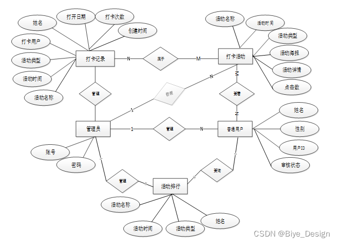 下面是整个诗词打卡微信小程序中主要的数据库表总E-R实体关系图。