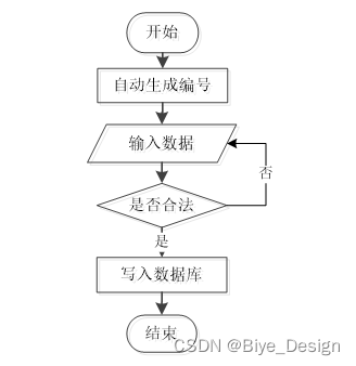 用户成功登入系统后就能够实现增加数据的操作,增加数据的编号是特定的,系统生成,用户不能随意填写,除了编号以外,其他增加信息用户自己填写,填写后的信息经过系统验证,验证合法通过就显示增加数据成功了,相反的话,就没有增加成功,图2-1显示的就是在增加数据时的流程。
