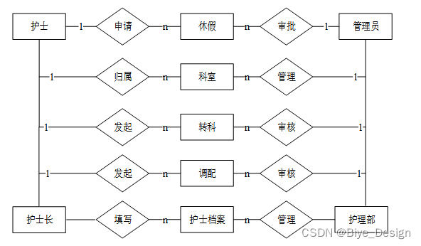 对于一个要开发的系统来说,E-R图可以让别人能更快更轻松的了解此系统的事务及它们之间的关系。根据系统分析阶段所得出的结论确定了在医院人力资源管理系统中存在着多个实体分别是用户、护士档案、休假申请、调动记录等。