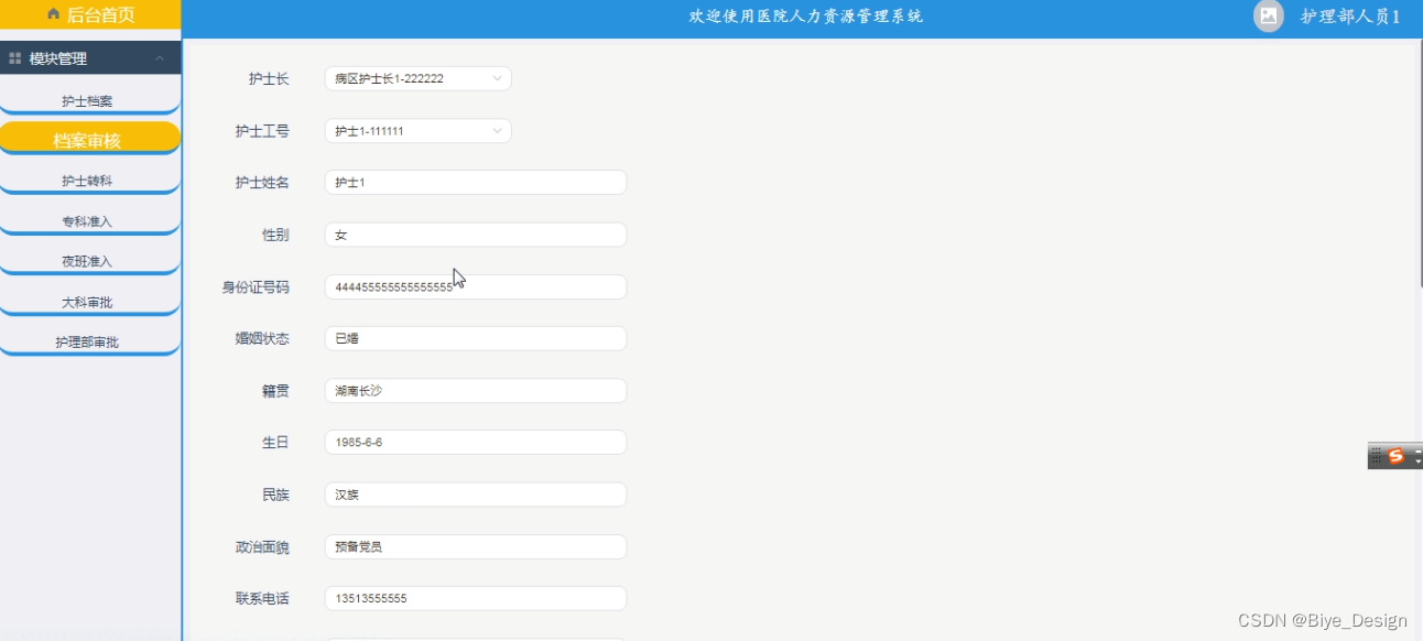 管理护士档案,并可以销毁某个护士档案,更新护士档案数据,模糊搜索护士档案数据等。