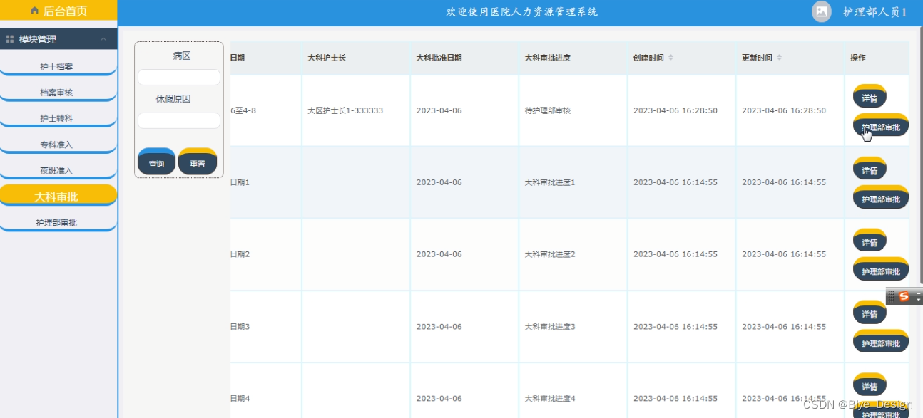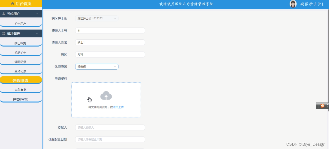 查看护士提交的休假申请数据,管理员有权利维护它。