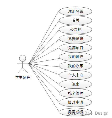 图2.1 高校大学生学科竞赛管理系统中学生用户角色用例图