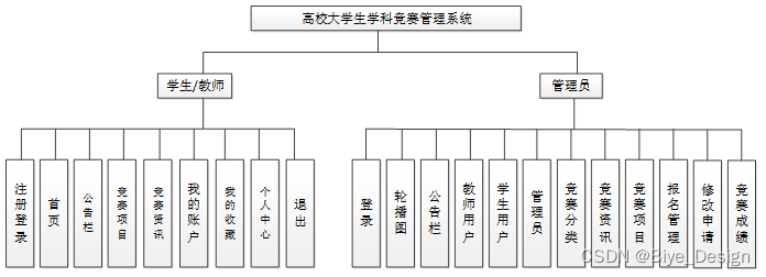 图3.1高校大学生学科竞赛管理系统功能模块图
