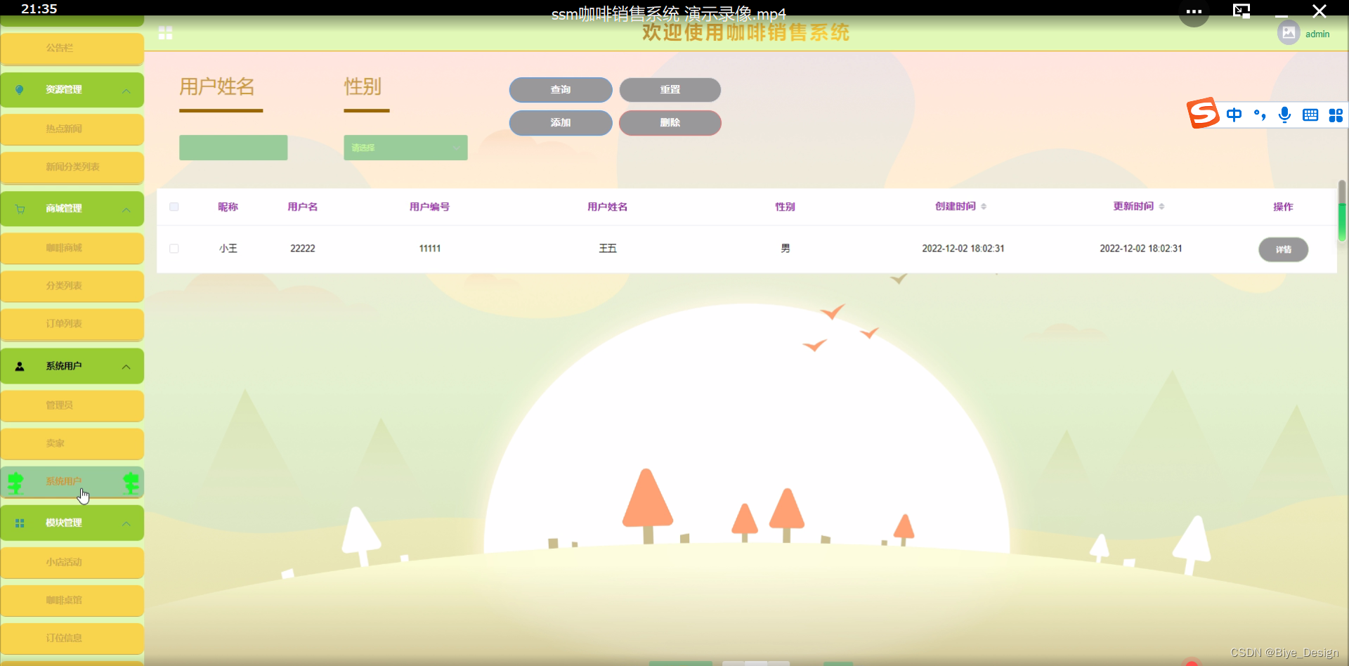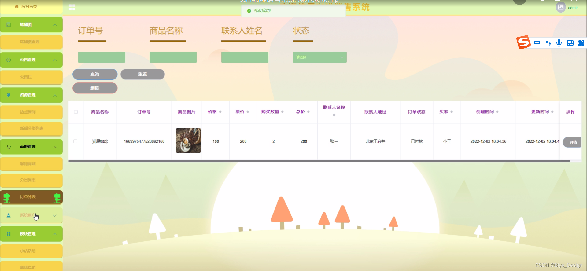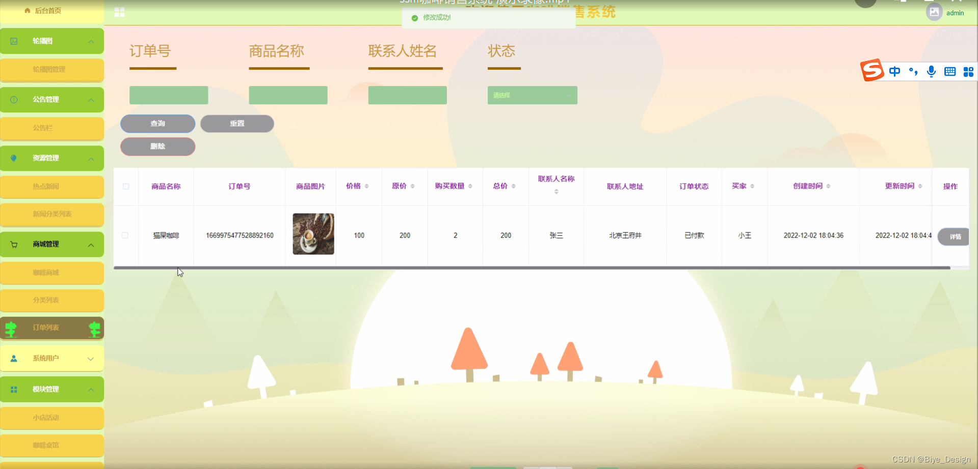第五章对咖啡销售系统进行实现,并贴出相关页面截图,语言描述出具体功能实现的操作方法。