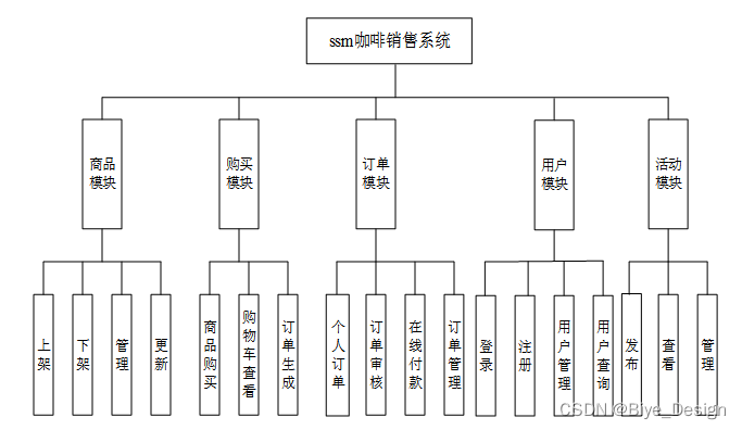 - 商品管理:用户下订单购买商品,由管理员定期负责处理,根据订单信息向用户送货,维护现有咖啡销售系统中的所有商品详情。