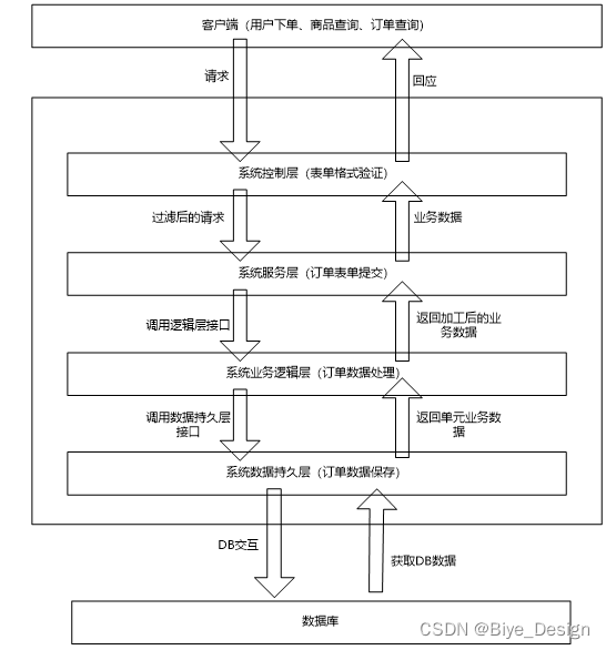 页面发送请求给控制器,控制器调用业务层处理逻辑,逻辑层向持久层发送请求,持久层与数据库交互,后将结果返回给业务层,业务层将处理逻辑发送给控制器,控制器再调用视图展现数据。