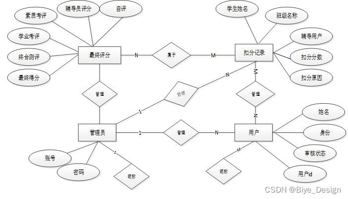 通过大学生综合素质测评系统的功能进行规划分成几个实体信息,实体信息将通过ER图进行说明,本系统的主要实体图如下: