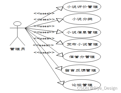 管理员模块:系统用户管理、小说分类管理、关于我们设置、用户注册管理、小说发布管理、小说分类管理、信誉记录管理、评价小说管理、留言反馈管理、论坛管理。
