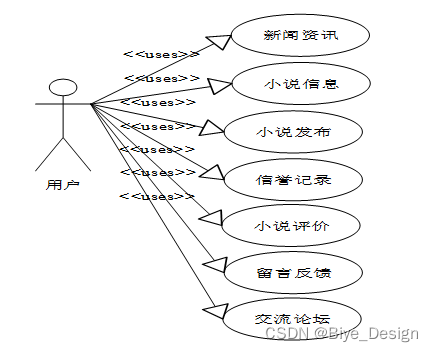 用户模块:小说浏览、公告栏、发布小说、信誉编辑、小说信息、留言反馈、小说点赞收藏等。