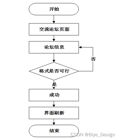 交流论坛管理包括新增、删除、修改、查询交流论坛等,以交流论坛新增为例,在视图层请求交流论坛信息新增,反馈后,调用业务逻辑层,通过业务逻辑层的接口调用底层的数据逻辑层完成数据库联动操作。