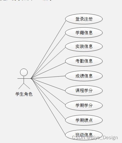 对于学生用户所使用的功能模块的操作主要是登录注册、学籍信息、实践信息、考勤信息、成绩信息、课程学分、学期学分、学期绩点、班级信息等功能。