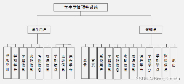 系统所要实现的功能分析,对于现在网络方便的管理,系统要实现用户可以直接在平台上进行查看所有数据信息,根据需求可以进行在线添加,删除等信息,这样既能节省时间,不用再像传统的方式耽误时间,真的很难去满足用户的各种需求。所以学生学情预警系统的开发不仅仅是能满足用户的需求,还能提高管理员的工作效率,减少原有不必要的工作量。