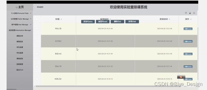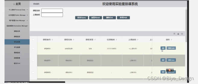 The development of a laboratory course scheduling system makes it more convenient and efficient, while also promoting a more systematic and orderly laboratory course scheduling system. The system interface is relatively friendly and easy to operate.