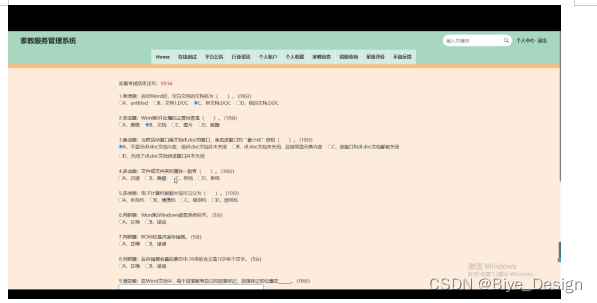 注册用户登录家教服务管理系统,功能为:首页,在线测试,平台公告,行业资讯,个人账户,个人收藏,家教信息,错题收纳,星级评价,不良反馈等功能,如下图所示: